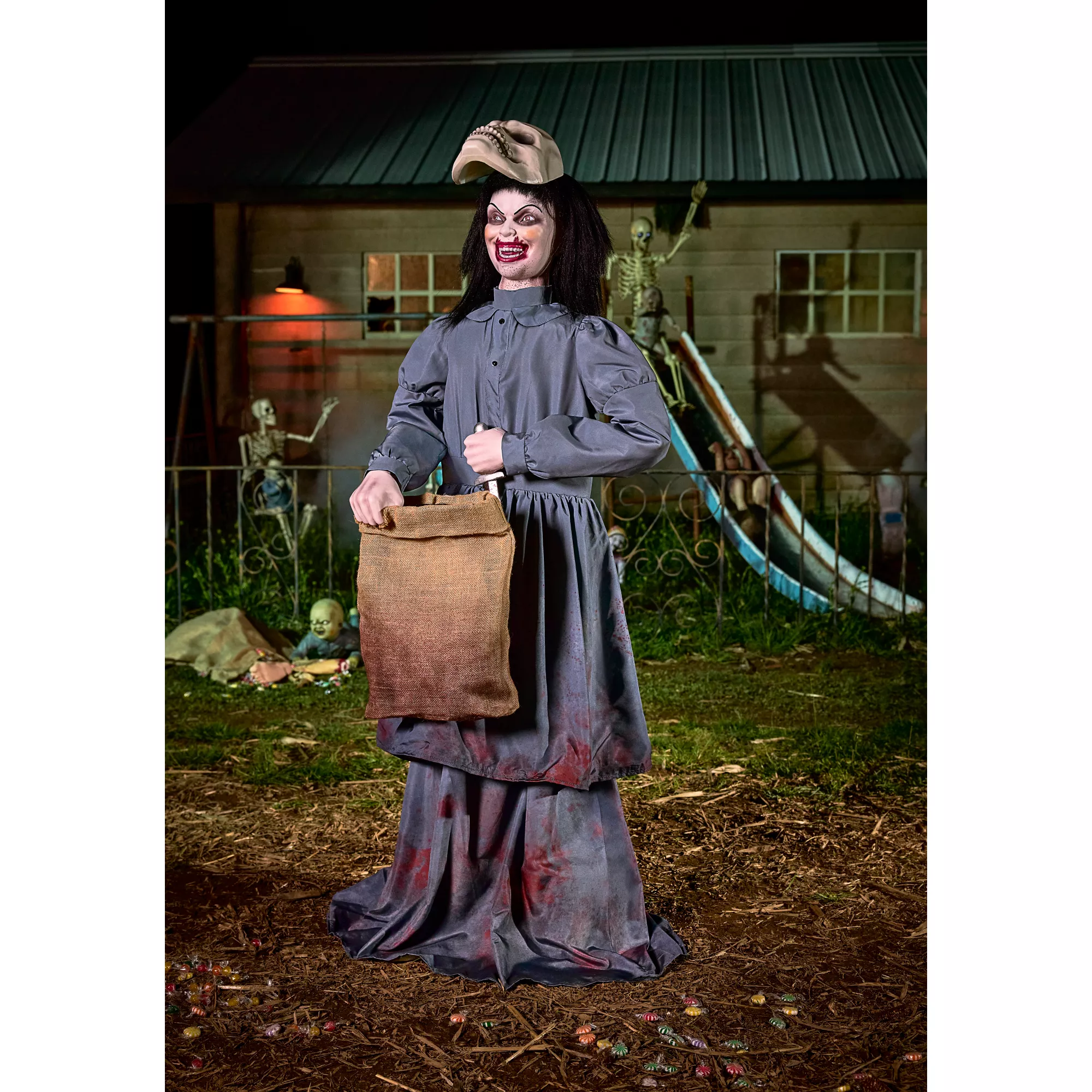 In the movies, most legendary killers are finally caught by the time Halloween night ends. Trixie is an exception; she gleefully uses the night of trickery to sneak around as a trick-or-treater. She goes unnoticed in her skeleton mask but when she finds an adult that refuses to celebrate Halloween, her killer instincts kick in and her mask quickly pops up, illuminating her sinister smile and sharp knife. Satisfied by the thrill of the kill, she flips her mask back on and finds a new house to torment. She’ll pop up again 364 days later in a new town where she will help rid the neighborhoods of those boring adults who refuse to celebrate Halloween. This trick-or-treater is out for more than just candy – she’s out for blood. Always ready for her next kill, Trixie crouches at 4’1” and quickly rises up to 5’5” tall while brandishing her concealed knife and gleefully wicked grin, illuminated by the white LED lights embedded in her mask. Best to do as she says and fork over your Halloween treats…but even the sweetest morsel won’t guarantee that you’ll make it home in one piece.