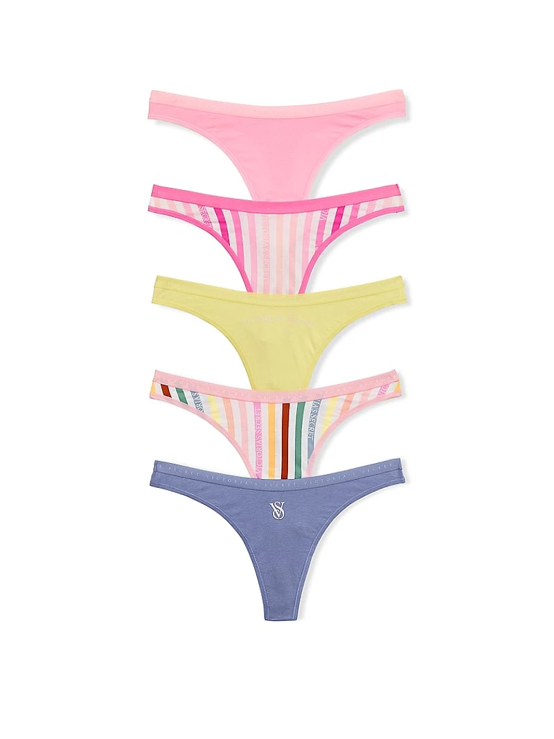 5-Pack Stretch Cotton High-Leg Scoop Thong Panties