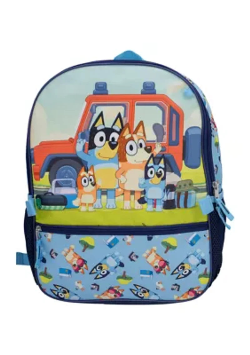 This Bluey set is perfect for school or weekend outings. It includes a spacious backpack with a convenient front zip pocket, an insulated lunch kit to keep meals fresh, a gadget or pencil case, a carabiner clip, and a fun, detachable stress ball. 5-piece set Imported Product Specifications 16" x 12" x 5" Material & Care Polyester Spot clean only