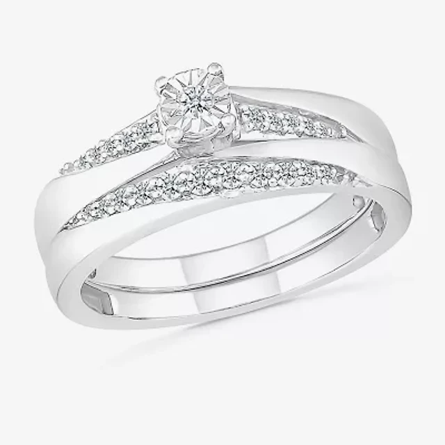 5.20mm Unisex Adult 1/4 CT. T.W. Natural White Diamond 10K White Gold Round Side Stone Wedding Ring Set