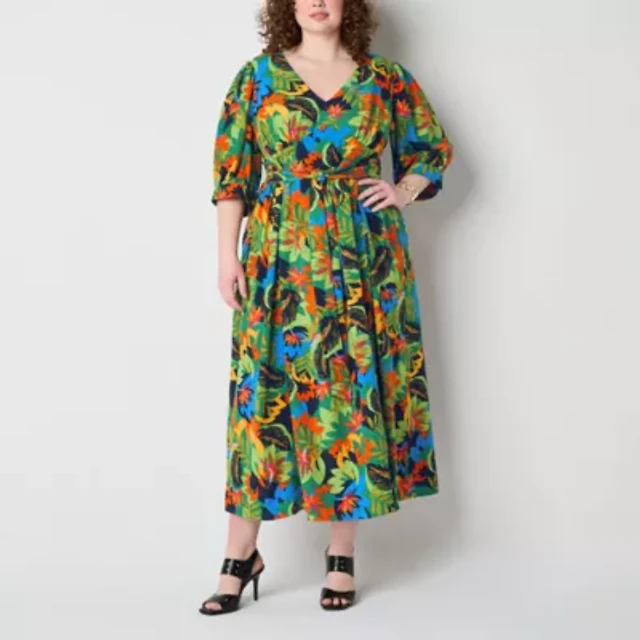 Isabel & Nina Womens Plus Long Sleeve Floral Maxi Dress
