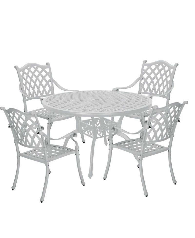 5pcs Patio Dining Set Cast Aluminium Outdoor Dining Set Patio Bistro Set 4 Outdoor Dining Chairs and 47 Inches Round Dining Table