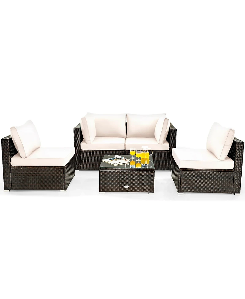 5PCS Patio Rattan Furniture Set Cushioned Sofa Chair Coffee Table