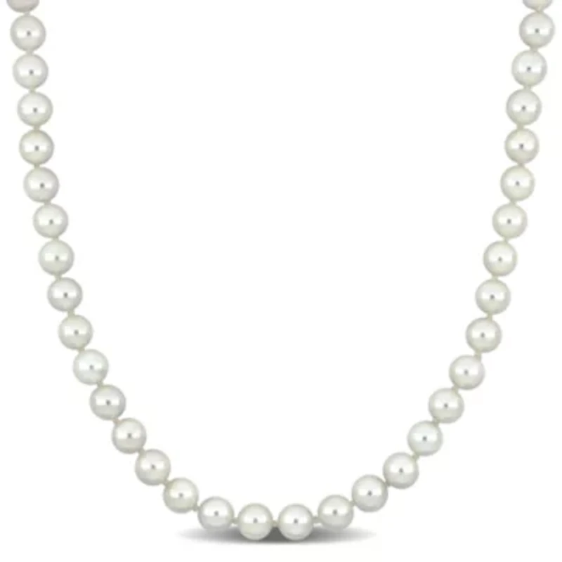 Timeless and elegant, this Akoya pearl necklace features lustrous cultured pearls that rest gracefully along the neckline. The 14k yellow gold fisheye clasp adds a refined touch, combining classic sophistication with subtle modern detail. Perfect for enhancing everyday outfits or adding a polished accent to special occasions, this necklace is a versatile and enduring symbol of style. Jewelry clasp Polished finish Warranty available, 60 days Thailand Imported Belk Exclusive Product Specifications 18" Material & Care 14K Yellow Gold Metal, Yellow Gold Clean with a soft cloth.