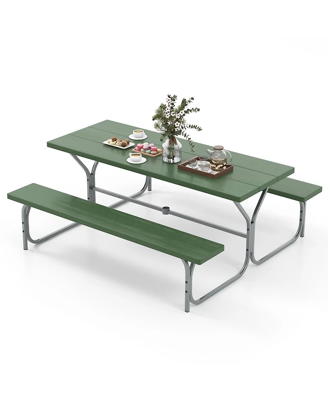 Sugift Hdpe Outdoor Picnic Table Bench Set with Metal Base