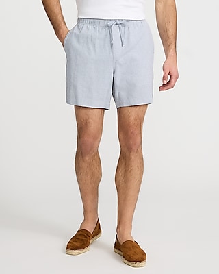 A breathable cotton-linen blend short complete with a drawstring elastic waist, slant hand pocket, and buttoned back welt pockets. This style features a modern 6" length.