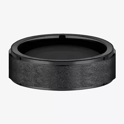 Mens Comfort Fit 7mm Black Titanium Satin Wedding Band