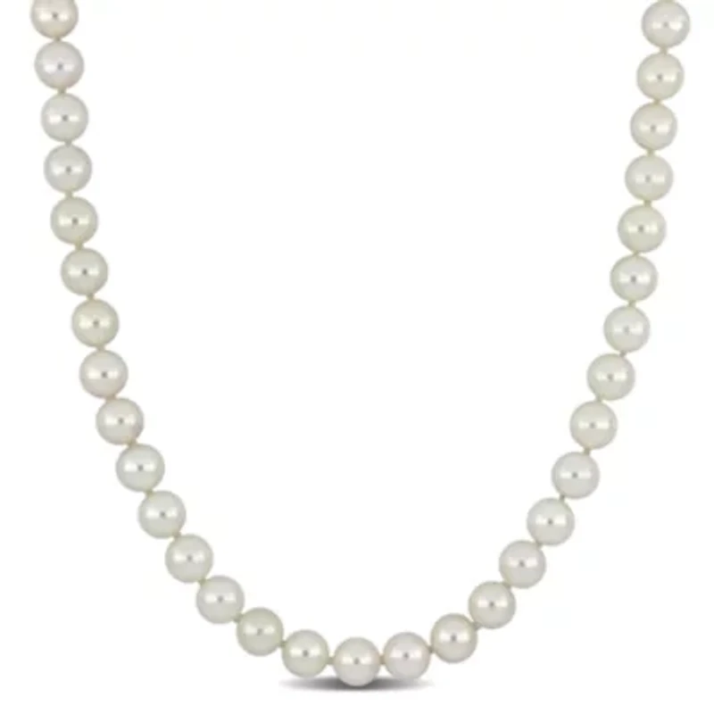 Exquisitely refined, this Akoya pearl strand necklace features lustrous cultured pearls that rest gracefully along the neckline. The 14k yellow gold beaded fisheye clasp adds a warm, elegant touch, blending classic sophistication with subtle modern detail. Perfect for elevating everyday ensembles or adding timeless charm to special occasions, this necklace is a versatile and enduring statement of elegance. Jewelry clasp Polished finish Warranty available, 60 days Thailand Imported Belk Exclusive Product Specifications 18" Material & Care 14K Yellow Gold Metal, Yellow Gold Clean with a soft cloth.