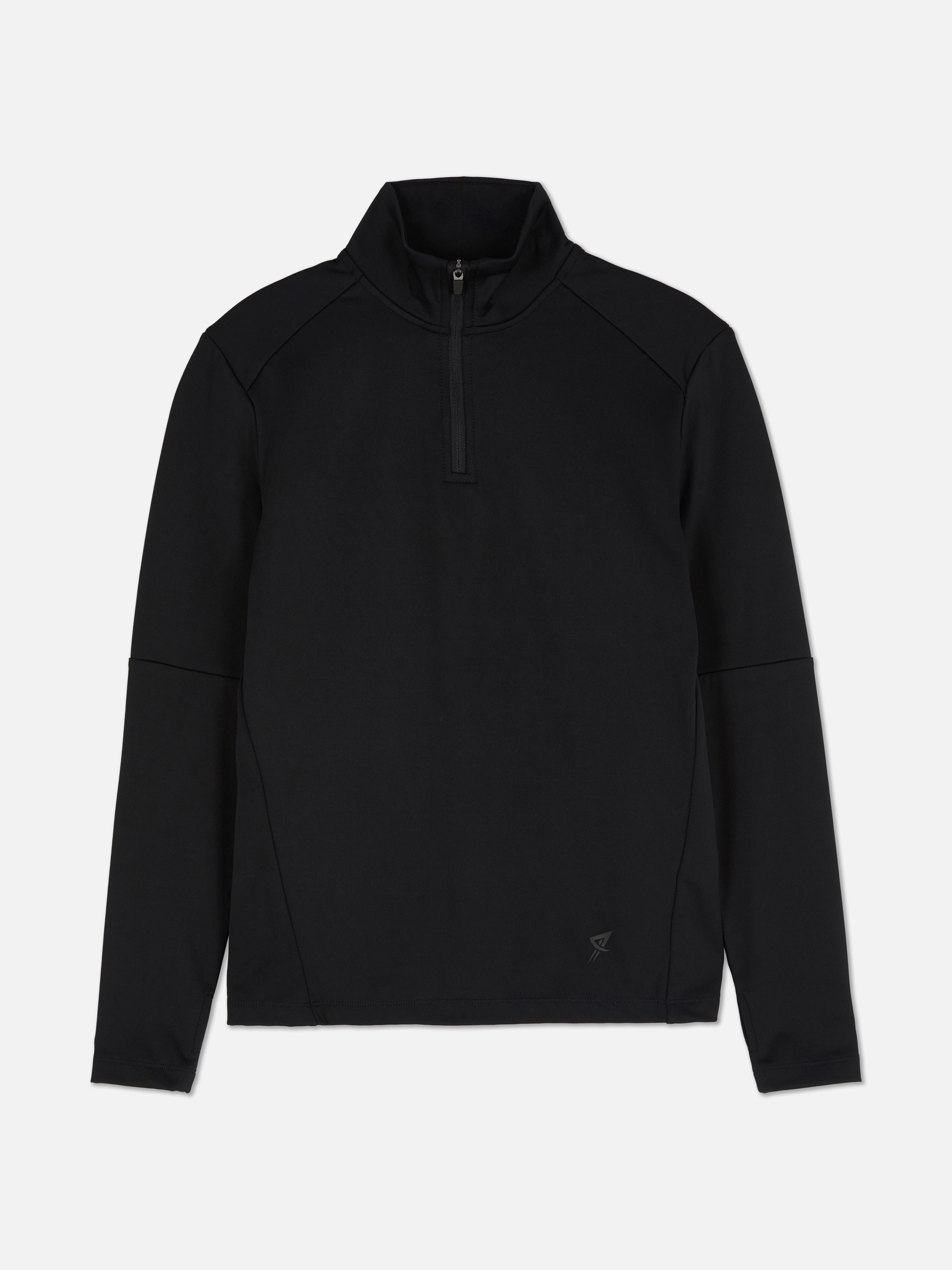 A funnel neck sports jacket with a half-zip front fastening
