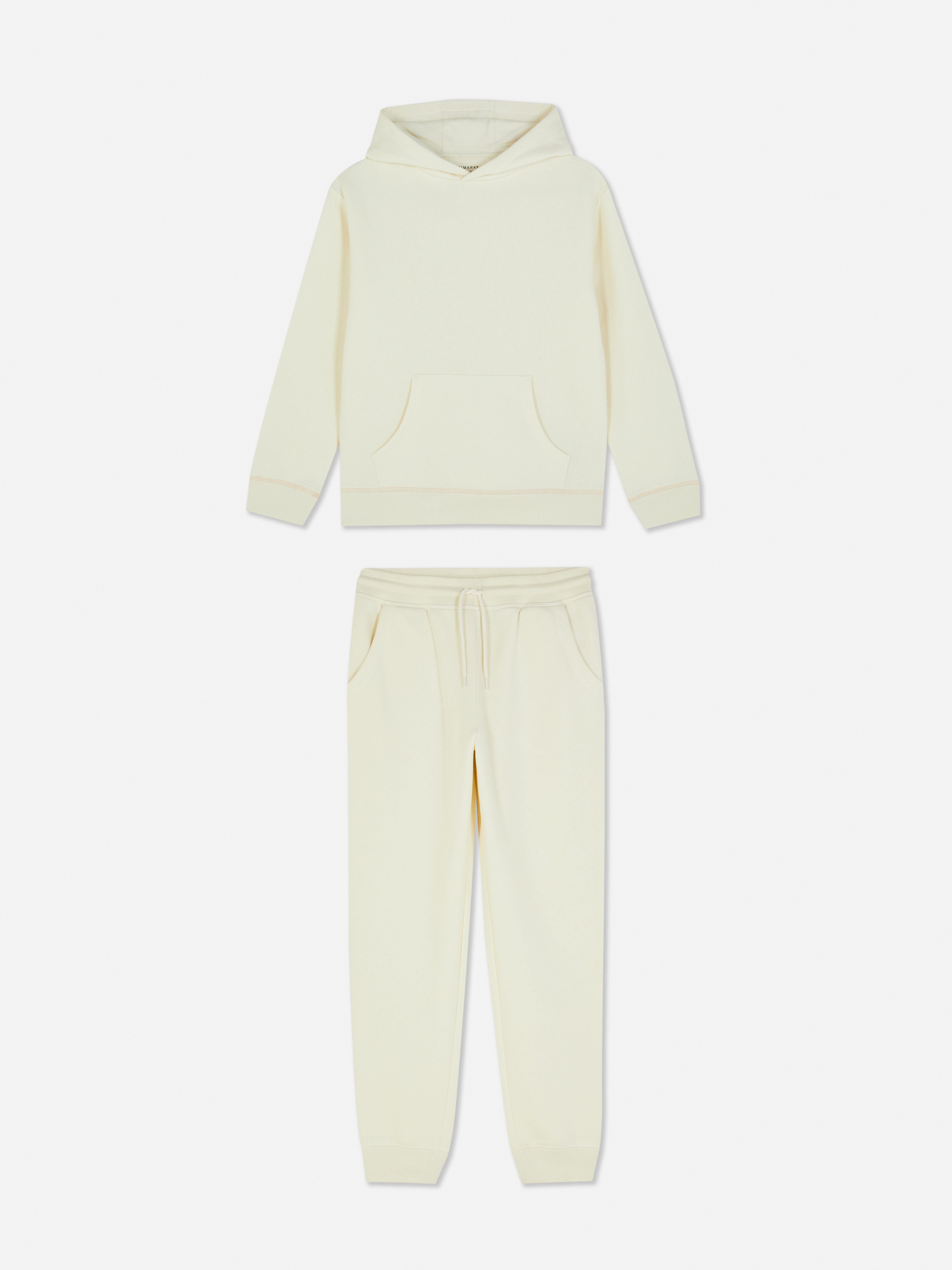 This co-ord includes a pullover hoodie with a kangaroo pouch pocket and cuffed sweatpants