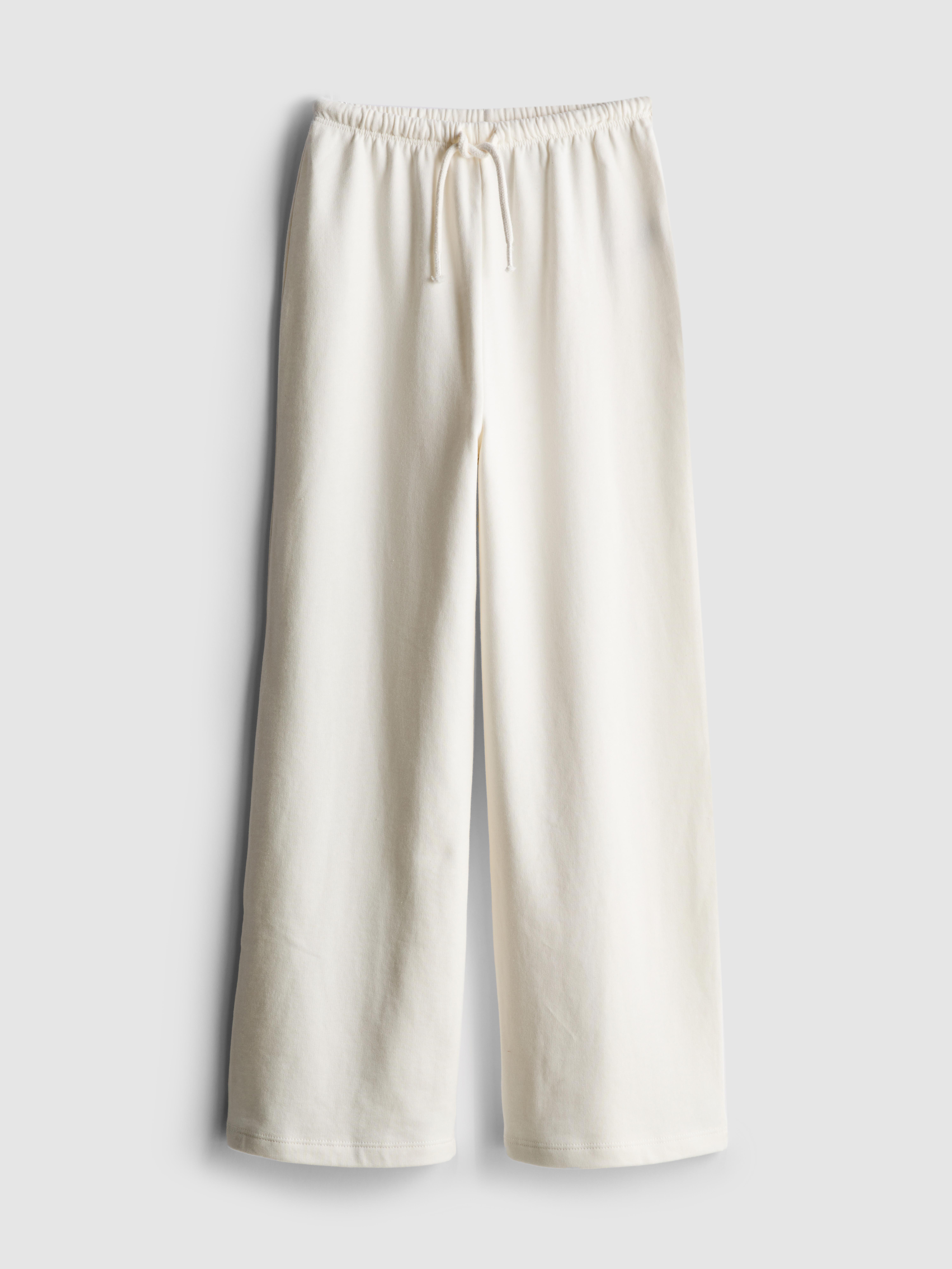 A pair of wide leg sweatpants with a drawstring-detail waist