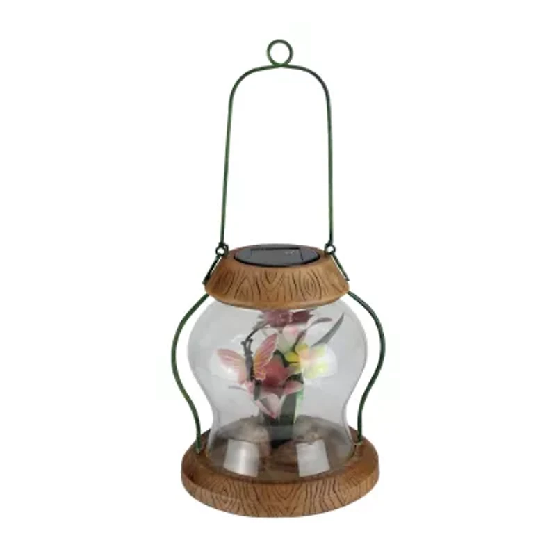 7'' LED Lighted Solar Powered Outdoor Garden Lantern with Flowers