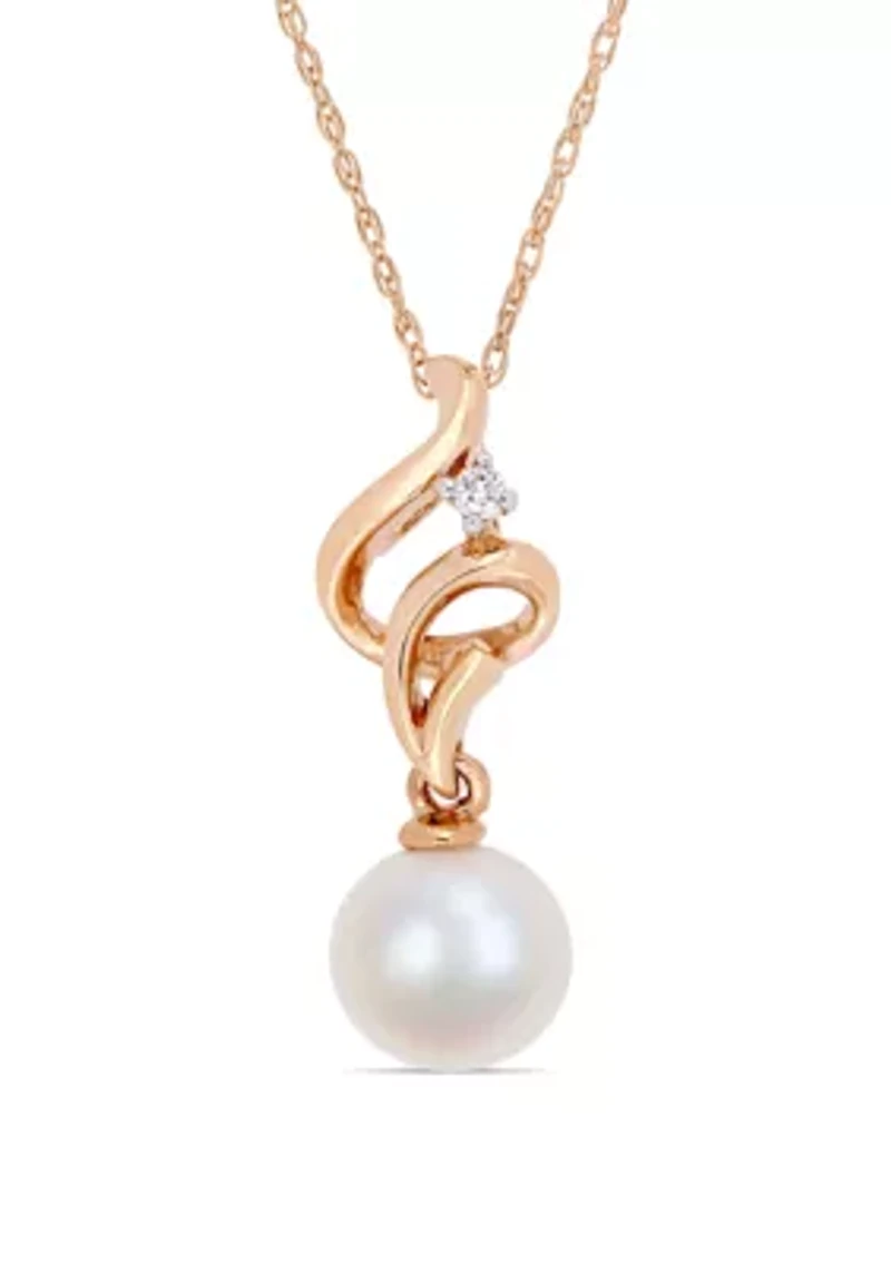 7 mm-7.5 mm Cultured Freshwater Pearl and 1/10 ct. t.w. Diamond Swirl Drop Necklace in 10k Rose Gold