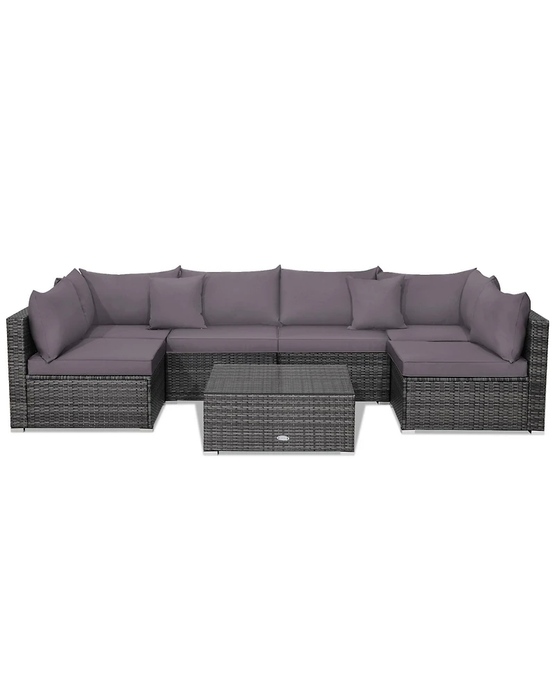 7 Pieces Patio Rattan Furniture Set Sectional Sofa Garden Cushion