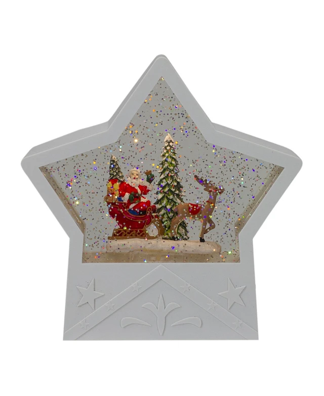 7" Star Christmas Snow Globe with Santa in Sleigh