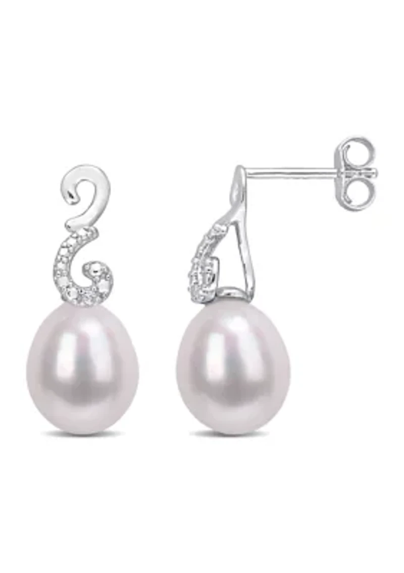 8-8.5mm Freshwater Cultured Pearl and Diamond Accent Peacock Drop Earrings in Sterling Silver