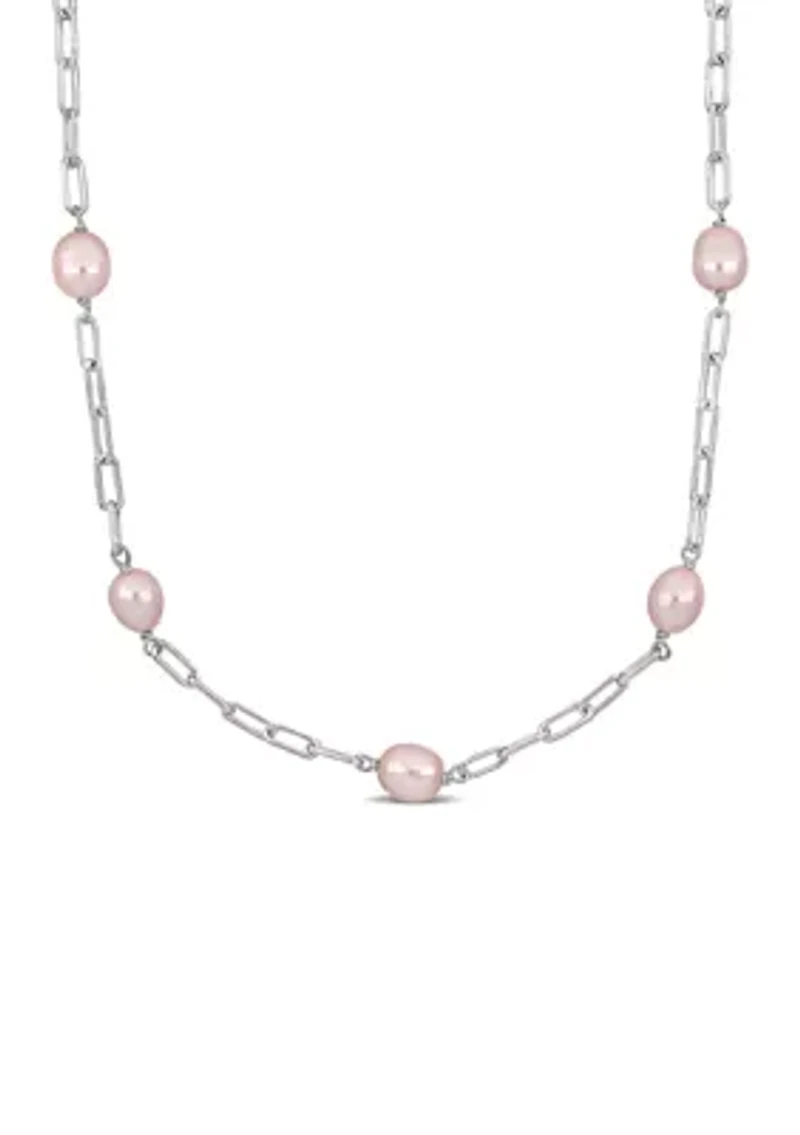 8-9mm Pink Cultured Freshwater Pearl Station Necklace in Sterling Silver