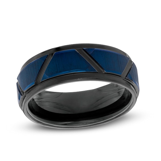 8.0mm Geometric Pattern Wedding Band in Black and Blue IP Tantalum - Size 10