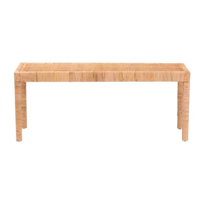 Enliven the ambiance of any layout with the exotic calmness of the abelia accent bench. made in indonesia, this bohemian piece consists of a solid wood frame wrapped in natural rattan. its wide rectangular seat is comprised of woven rattan for a cozy embrace while lending a light, airy display. the abelia requires minor assembly and features straight legs for excellent stability and support with crisp geometry. a modest silhouette engulfed in tropical bliss; the abelia accent bench refreshes any interior.