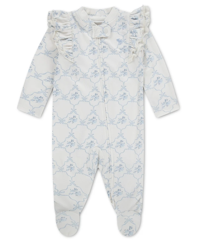 This cozy jersey coverall keeps little ones comfy day and night, with soft ruffle details for a sweet finish parents will love. The footed design adds warmth, while the gentle stretch allows easy movement for play, naps, and cuddle time.