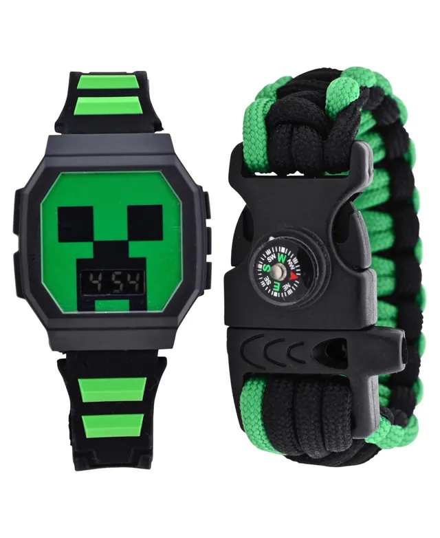 Accutime Kids Unisex Minecraft Creeper Green and Black Silicone Watch 36mm Set
