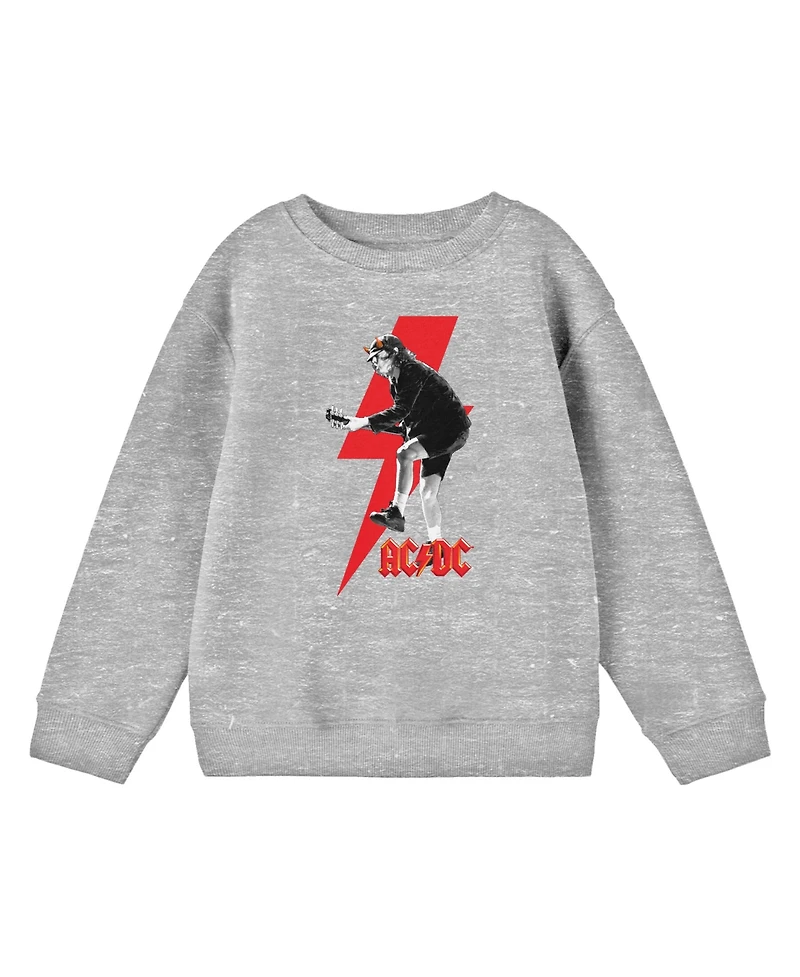 Ac/Dc Boys Acdc Monochrome Angus Young Red Lightning Youth Athletic Heather Gray Crew Neck Tee