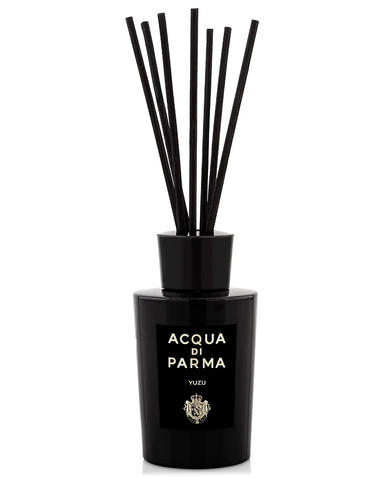 It's an original harmony that gives off all its light as never before with this Acqua Di Parma Yuzu diffuser, an embodiment of Signatures of The Sun's art of perfume that brings the prism of the sun to a poignant expression of the golden Yuzu fruit. Featuring black rattan classic reeds and set in a shiny black lacquered glass jar with a soft-to-touch black Signature label elevated with gold lettering, the diffuser embraces the home with fresh and vibrant fragrance notes of Yuzu.