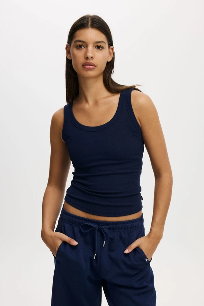 Everyone's favourite crop. The Active Rib Tank delivers flattering support with a racerback design, moisture-wicking fabric that keeps you cool and dry, and a lightweight cotton feel. Fitted body shape with a rounded neckline. Style it with our high rise tights for the studio, the street, or anywhere in between.