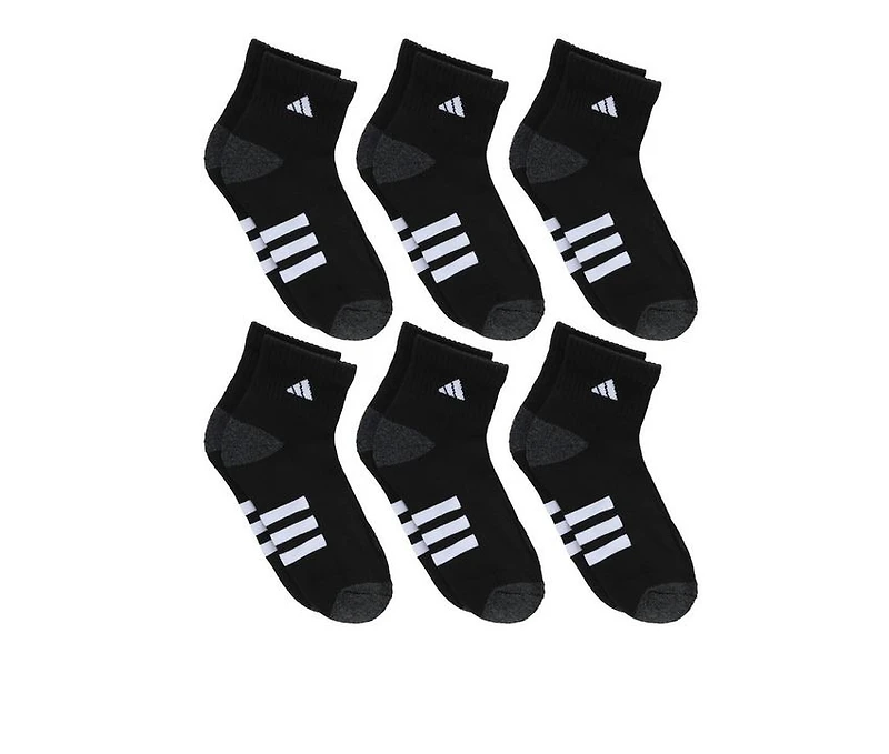 Adidas 6p Boys Cushioned Quarter 2 The Adidas Boys’ Cushioned Quarter Socks 2.0 deliver soft, everyday comfort with a supportive quarter-length design. A cushioned footbed helps provide extra comfort underfoot, while the ribbed cuffs keep each pair securely in place. Finished with classic Adidas branding, this six-pair pack offers dependable staples for school, sports, and daily wear.