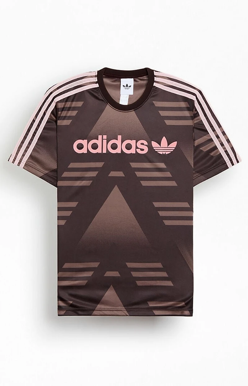 The adidas Brown Sponsored Short Sleeve Jersey brings sporty style with bold graphic detail. Featuring a printed design, short sleeves, a crew neckline, contrast 3-Stripes down the sleeves, and an adidas graphic on the front for a signature finish.