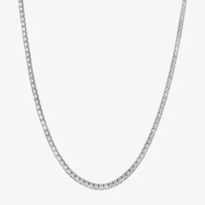 Adjustable Length Womens Cubic Zirconia Sterling Silver 26 Inch Tennis Necklace