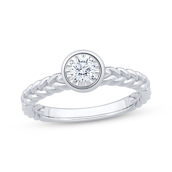 Adore Round-Cut Diamond Bezel-Look Solitaire Braided Shank Engagement Ring 1/4 ct tw 14K White Gold (I/I2)