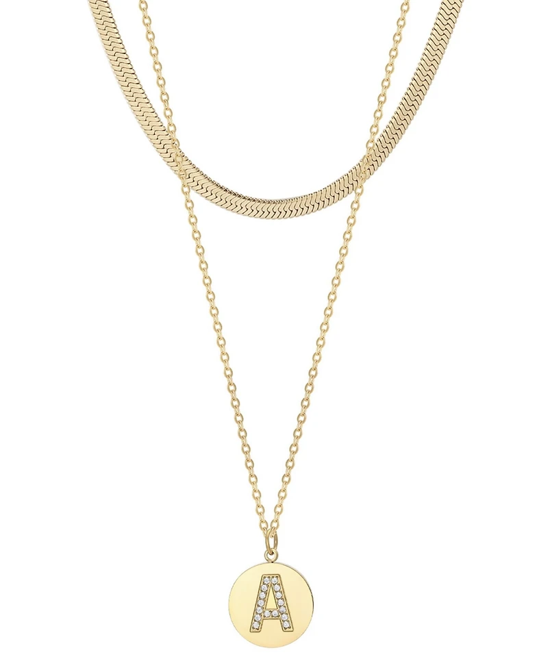 Adornia Cubic Zirconia Gold 2-Piece Initial and Herringbone Necklace Set
