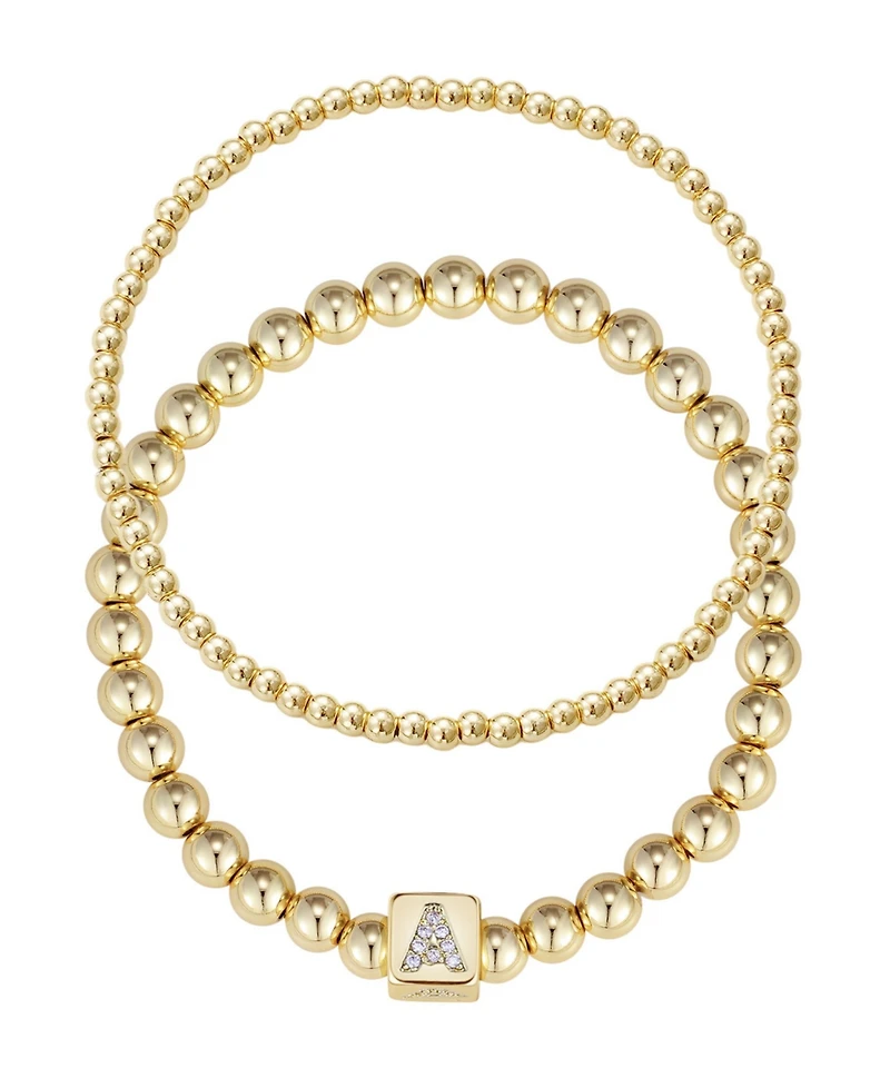 Adornia Cubic Zirconia Gold Set of 2 Initial Cube Bead Bracelet