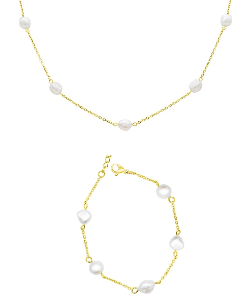 Adornia Freshwater Pearl Gold 2-Piece Necklace and Bracelet Set