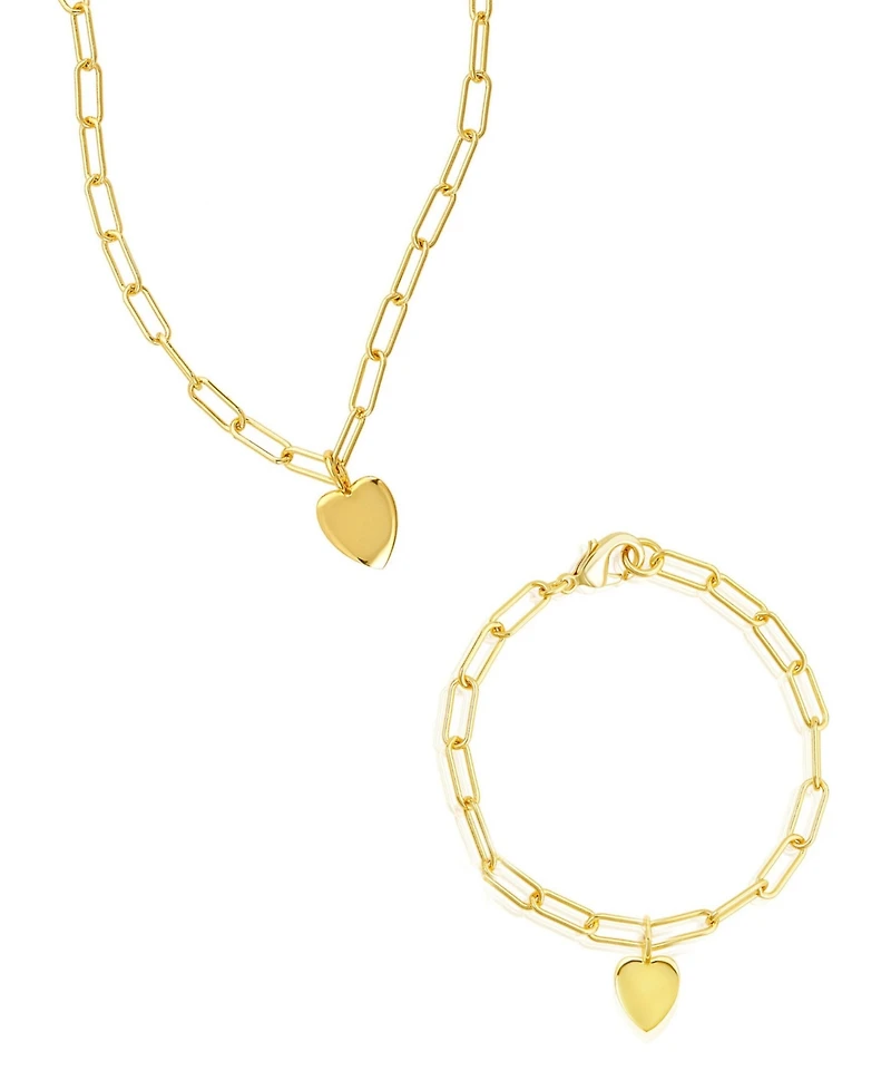 Adornia Gold 2-Piece Paperclip Heart Chain Necklace and Bracelet Set