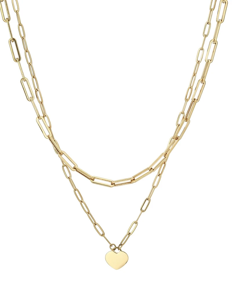 Adornia Gold Layered Heart Paperclip Chain Necklace Set