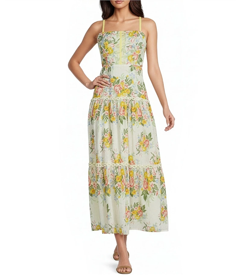 Adrianna Day by Adrianna Papell Floral Sleeveless Square Neck Midi Dress