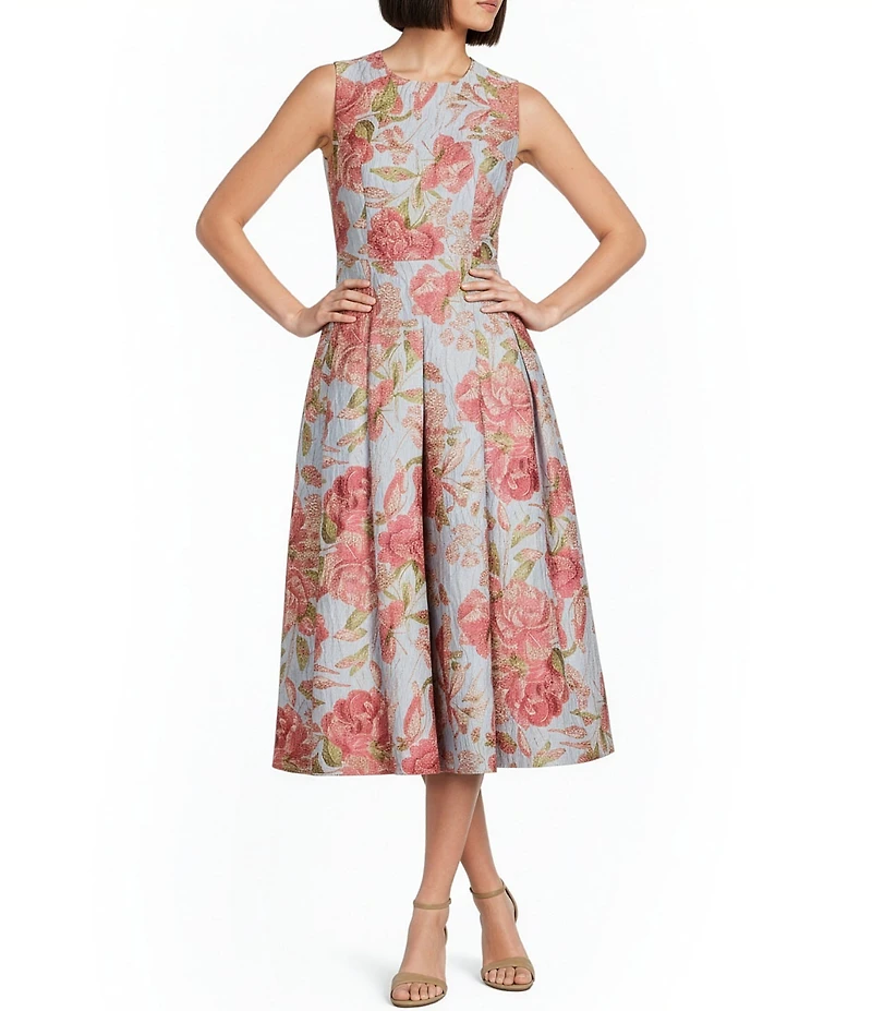 Adrianna Papell Floral Jacquard Crew Neck Sleeveless Drop Waist Midi Dress in Franklin, TN