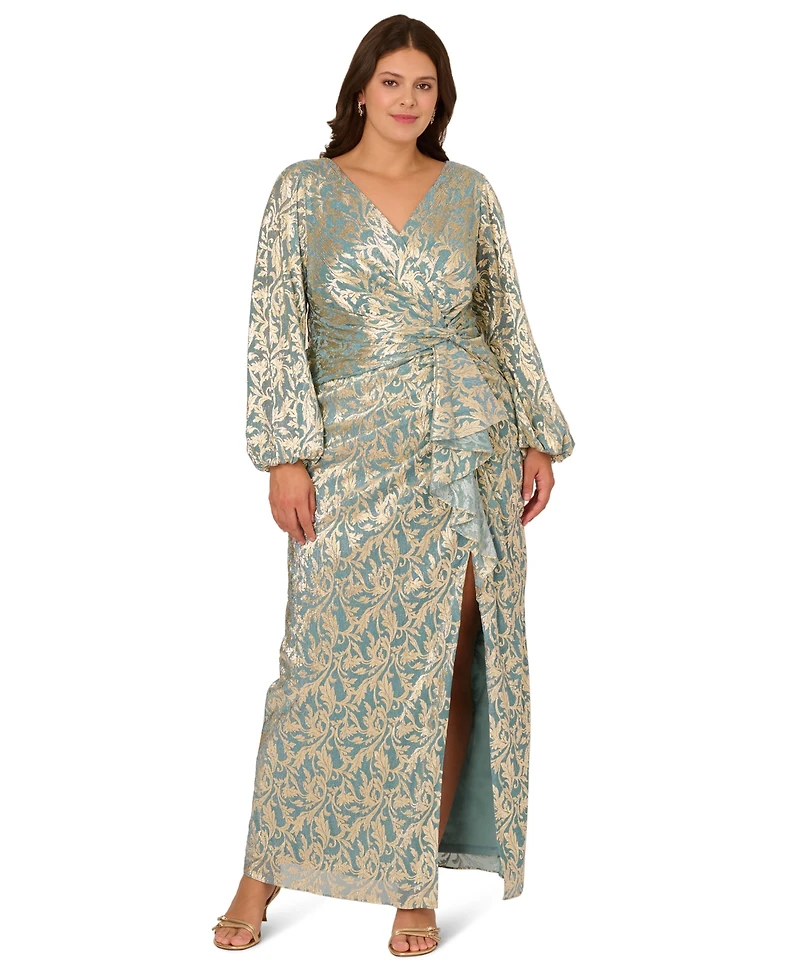 Adrianna Papell Plus Metallic Crinkle V-Neck Ball Gown in Franklin, TN