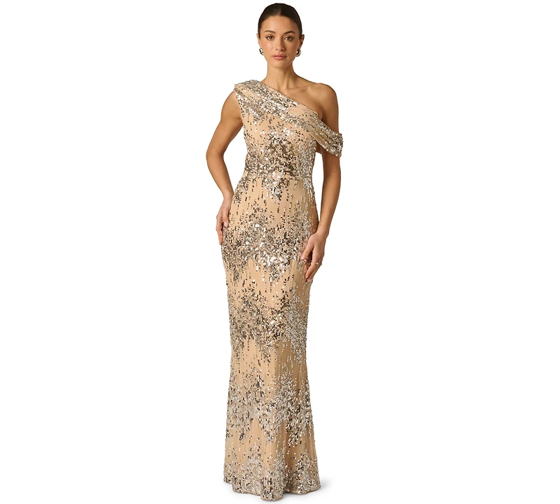 Adrianna Women's Draped Sequin One-Shoulder Ball Gown