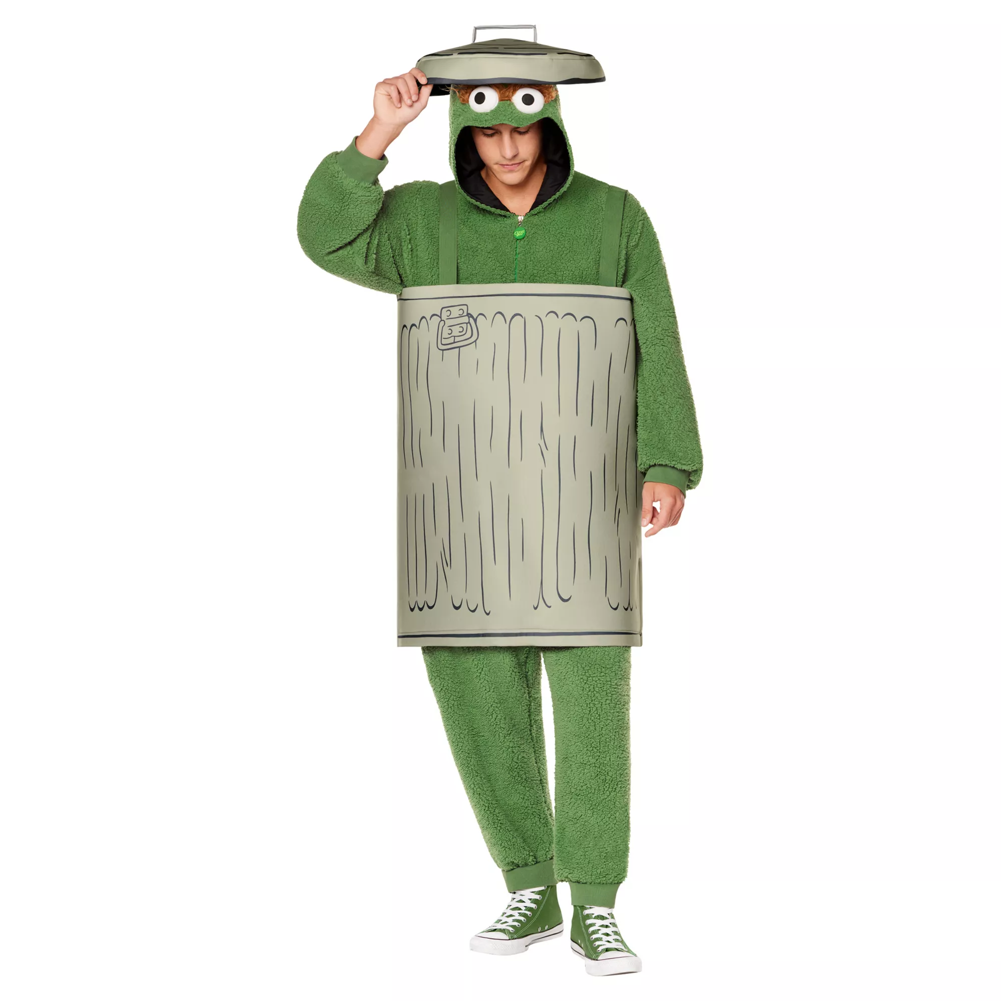 There's nothing wrong with adding a little trash to the Halloween fun! Dress up as Oscar the Grouch this Halloween in seconds with this zip-up green jumpsuit and trash can combo. This officially licensed Oscar the Grouch costume is perfect for fans of Sesame Street to show love for their favorite grouch.