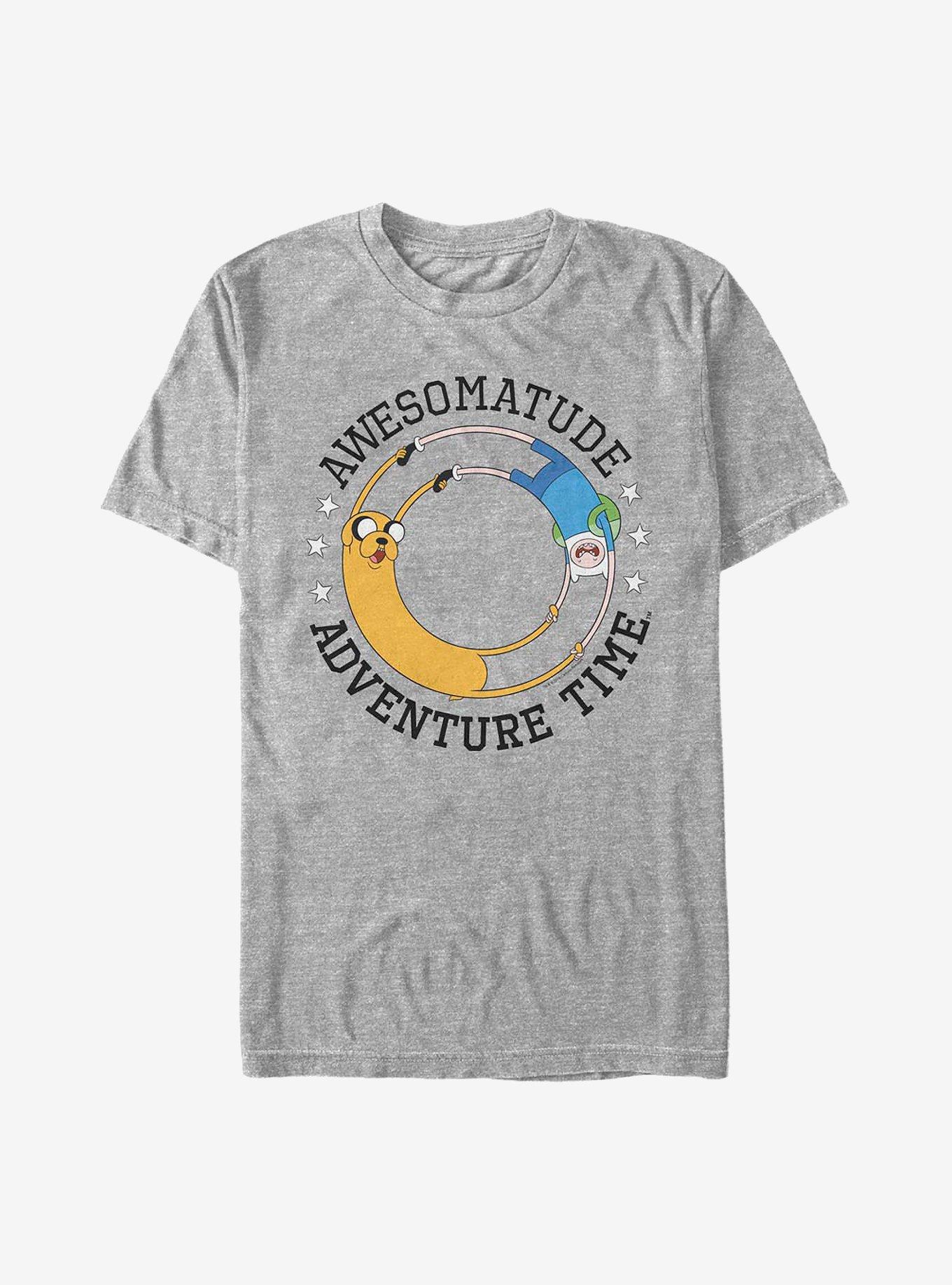 Don't forget to have awesometude.  With the help of this shirt, we will make sure you never forget! From Cartoon Network's Adventure Time , this grey tee features Finn and Jake with a distraught Ice King and "Awesomeatude" and "Adventure Time" verbiage.