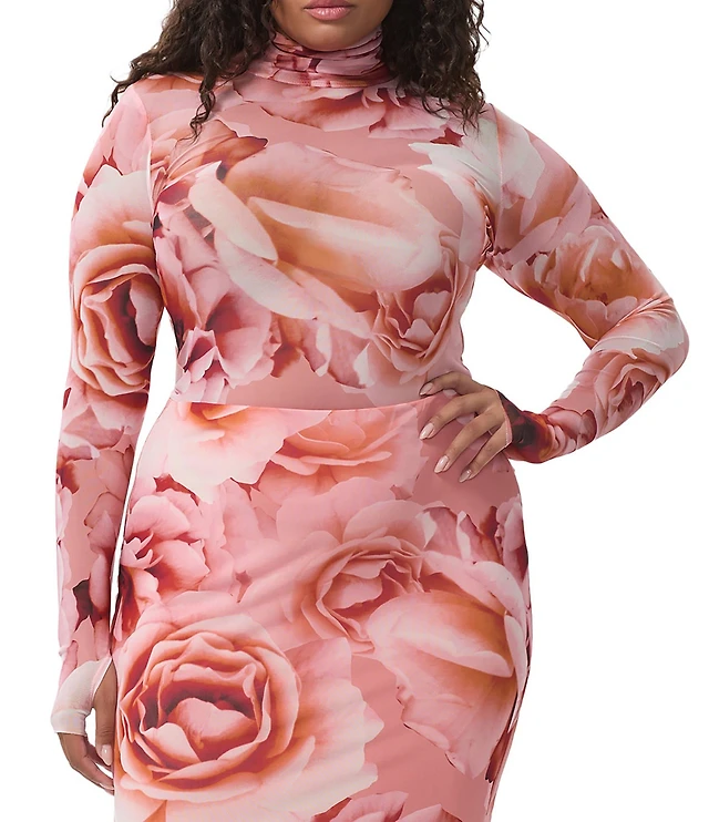 AFRM Plus Zadie Coordinating Floral Print Mock Neck Long Sleeve Top