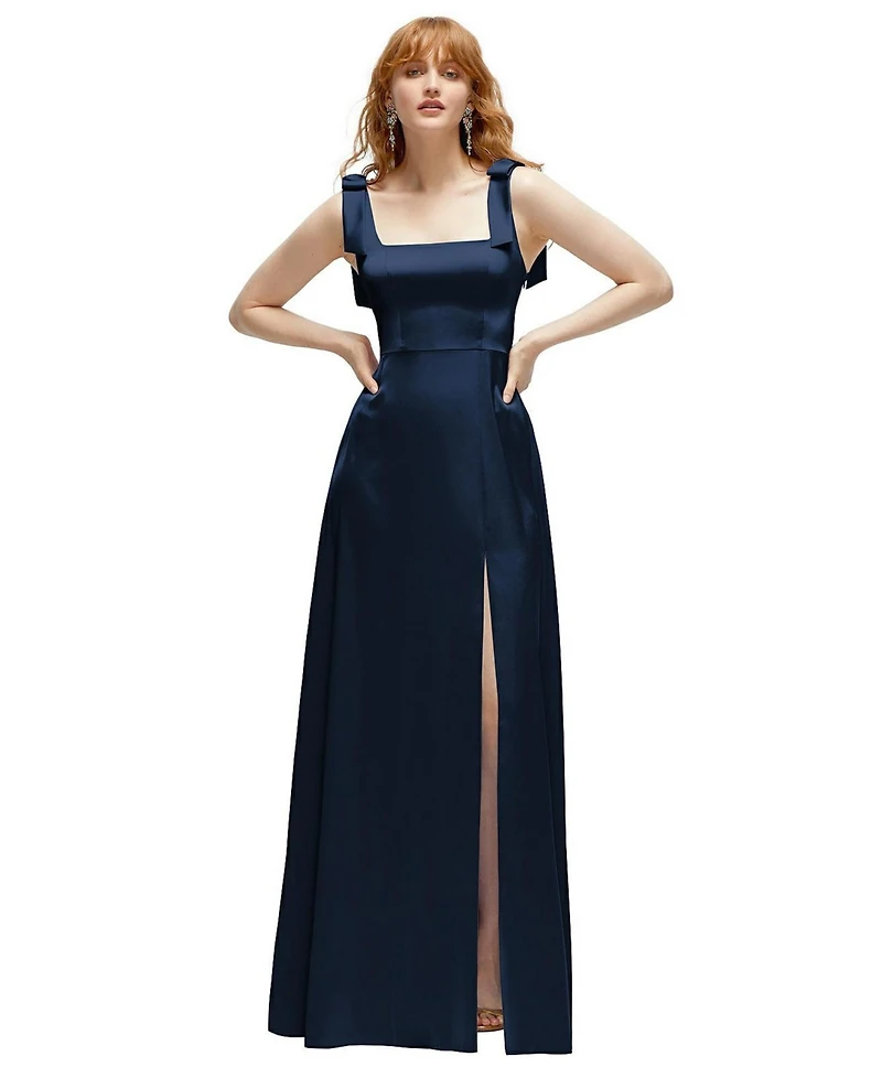 After Six Plus Square Neck Fluid Satin Maxi Dress with Bow Straps in Franklin, TN