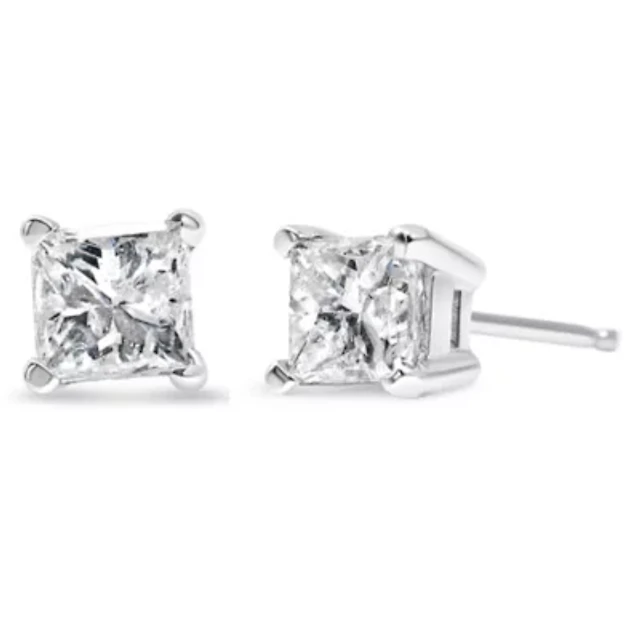 AGS Certified 14k Gold / Ct Princess Solitaire Diamond Stud Earrings