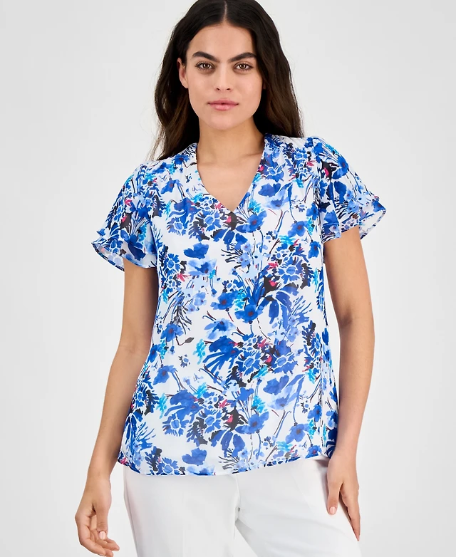 Ak Anne Klein Petite Floral-Print Tiered Blouse