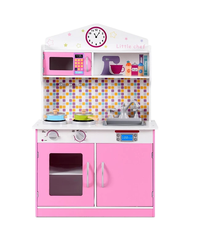 Hongge Wooden Kids Play Kitchen with Stove Sink Microwave and Oven