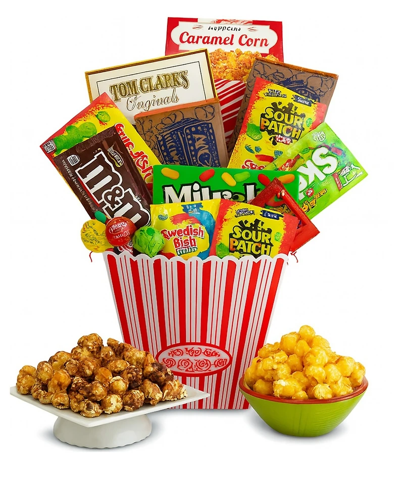 Make a movie night at home even more fun with Alder Creek Gift Baskets Ultimate Movie Night Gift. Whether you're a fan of comedies, adventure films, or horror movies, everyone loves fresh popcorn and an assortment of movie theater candies. Perfect for gifting birthdays, family gatherings, or a cozy movie night at home. The sweet and salty snacks included will have movie lovers of any age reaching for more delicious snacks served in a nostalgic popcorn bowl.