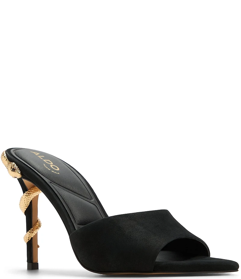 ALDO Seashella Suede Snake Hardware Stiletto Heel Dress Slide Sandals
